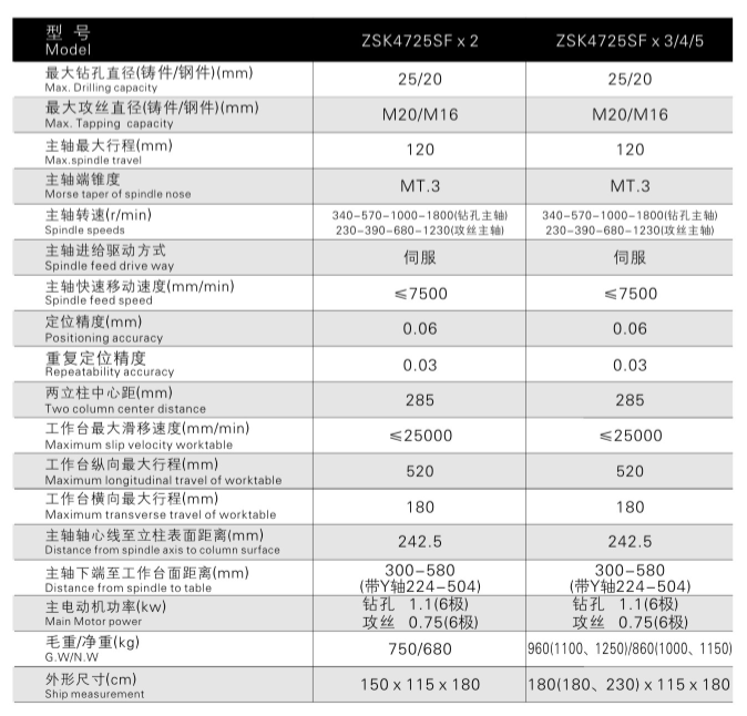 ZSK4735SF数控滑台式双工位组合机床采用双机头带移动工作台结构。机床采用高性能全伺服数控系统控制,操作界面为标准三轴控制界面,编程直观简单,双机位主轴进给均采用伺服电机驱动,工作台采用高精度线轨和滚珠丝杆结构的伺服电驱动。可实现高速高精度移位加工。零件一次装夹,可自动完成钻孔及扩孔、攻丝、倒角等两道复合工序的作业。实现全自动加工,-人可同时操作多台机床。攻牙机位为数控刚性攻丝,支持高精度攻丝。因此该机床具有孔位精度好、加工效率高、劳动强度低等优点。特别适合于同一轴线上钻孔和攻丝复合加工类零件的批量加工及多孔类零件的移位加工,配合多轴器使用,加工效率更高。