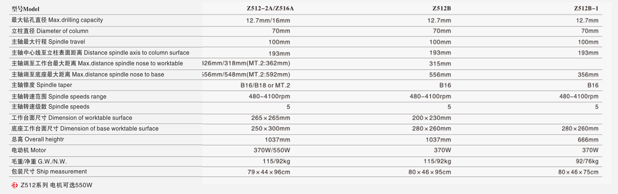 工业台钻: Z512-2 Z512B Z512B-1 Z516A